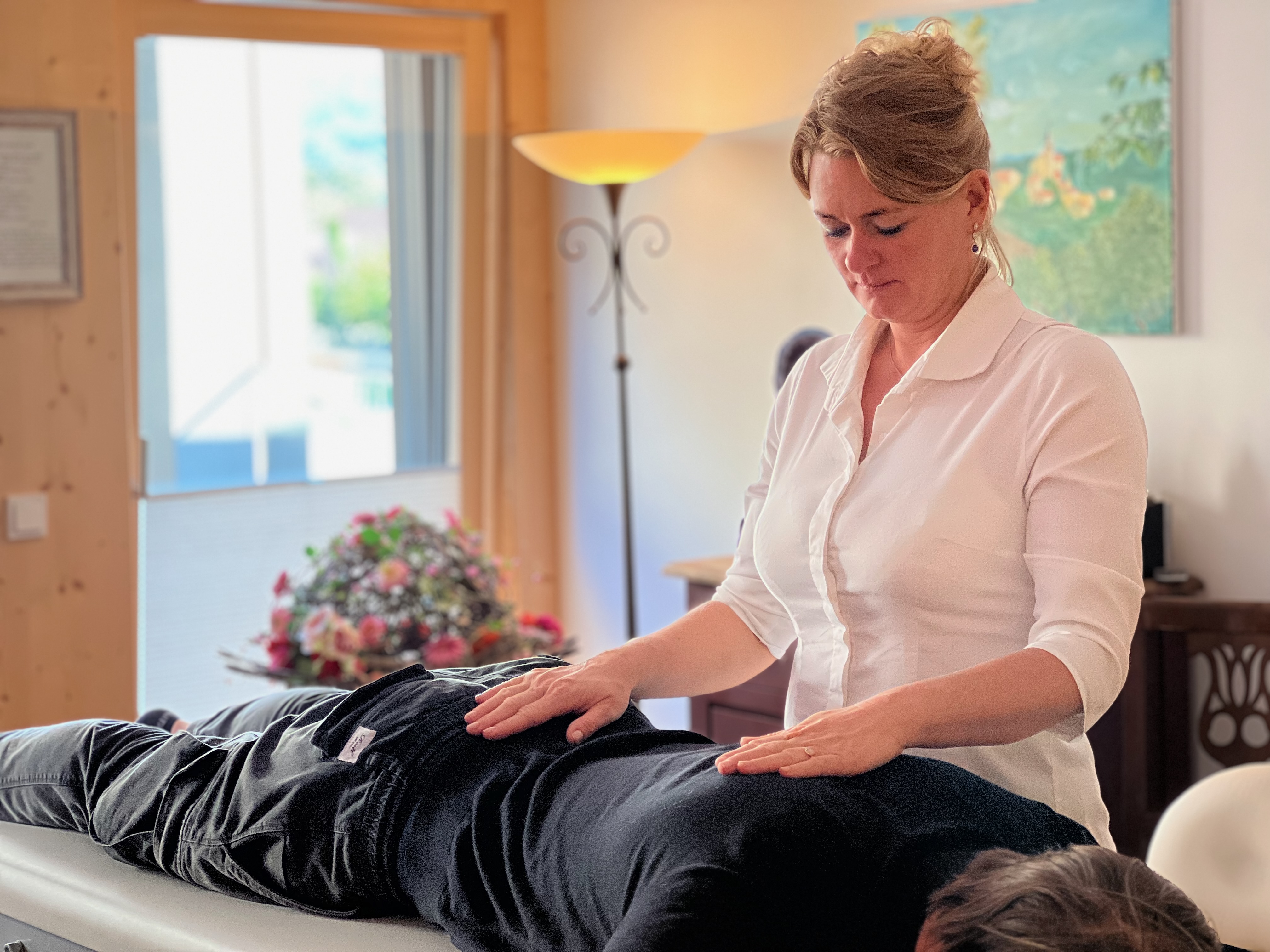 Nach einer sanften Lockerung der Rückenmuskulatur ist meist eine Beinlängendifferenz erkennbar.